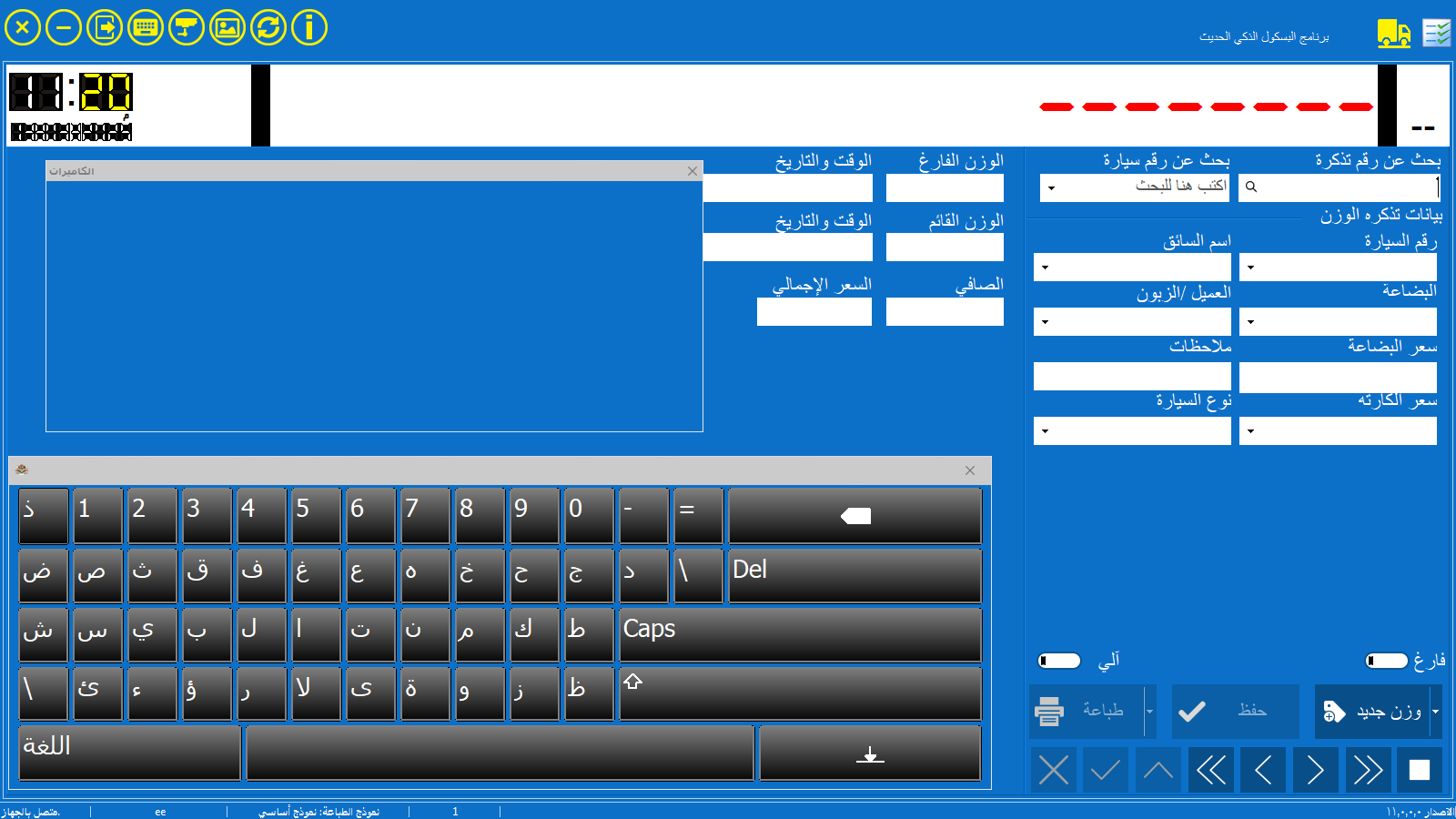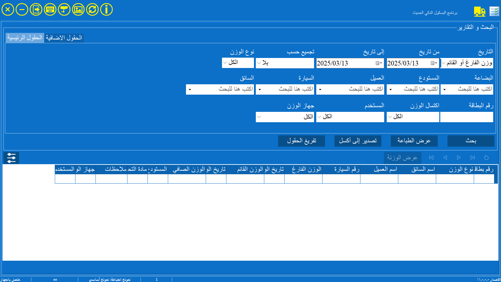 6-يحتوى على تقرير الوزن مثل (عدد الوزانات + الوزانات الصادة + الوادرة + بحث برقم سيارت معين + بحث باسم العميل + بحث باسم السائق ….)